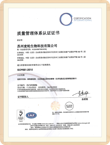 麦轮微生物已获得由香港国际规定化结购(ISO)草拟的品质申请续办软件规定ISO 9001:2015实名认证,在品质方案草拟、系统进程申请续办、充分申请续办、乙酰乙酸和做事全面推行等上适于评价语规定。